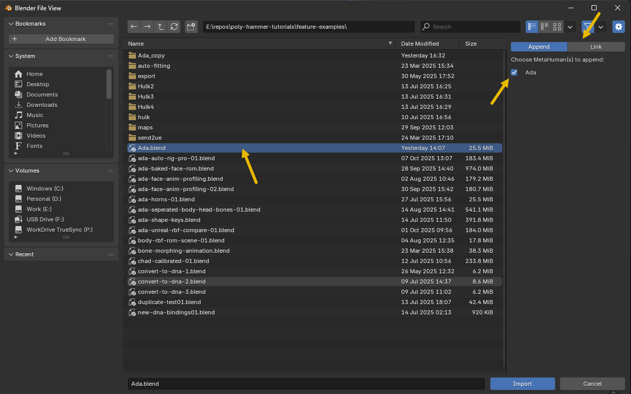 files. You can drag and drop them in the viewport, or you can open the import dialog with File > Import > MetaHuman DNA (.dna)